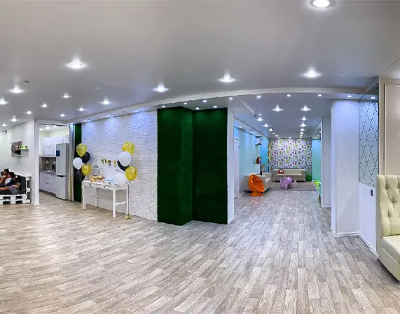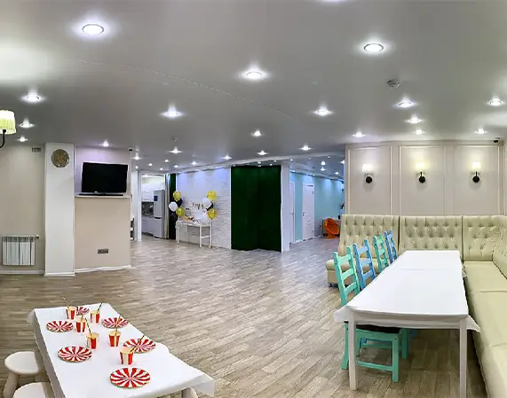 Площадка «KiNDER PARTY» это - уникальное пространство в центре города, которое идеально подходит для проведение детских праздников, семейных мероприятий. Удобная парковка у лофта. Игровая гостиная с огромным лабиринтом в три этажа, горкой, сухим бассейном и батутом. Наша команда