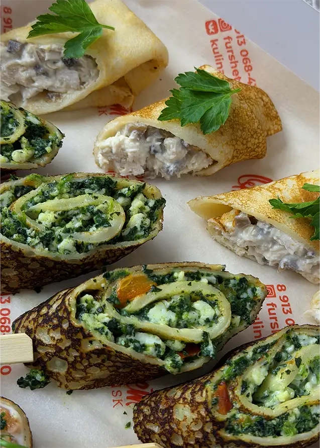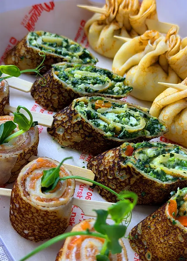 Канапе из цветных блинчиков
