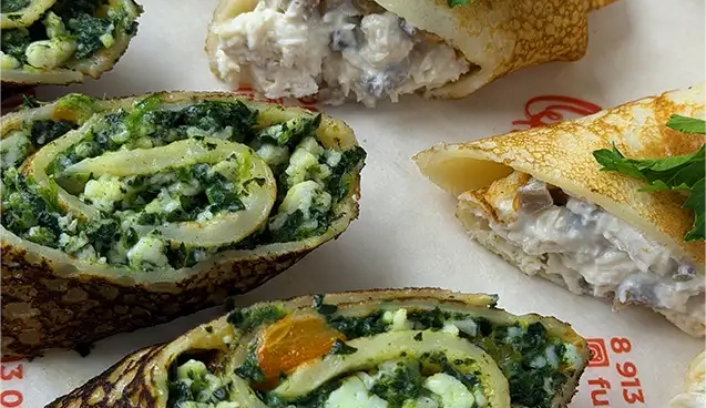 Цветные блинчики с творогом