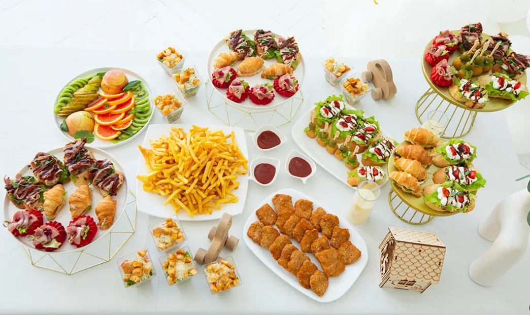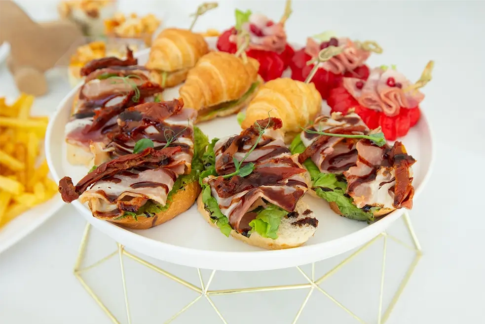 Профитроль, крем-чиз, пармская ветчина, брусничный соус