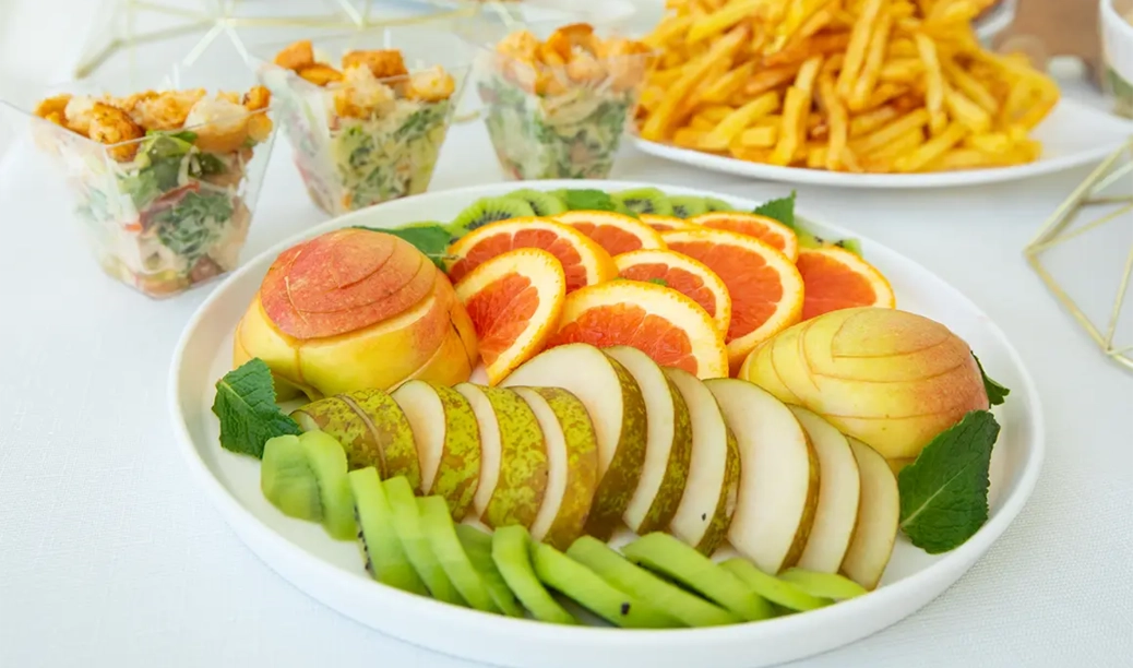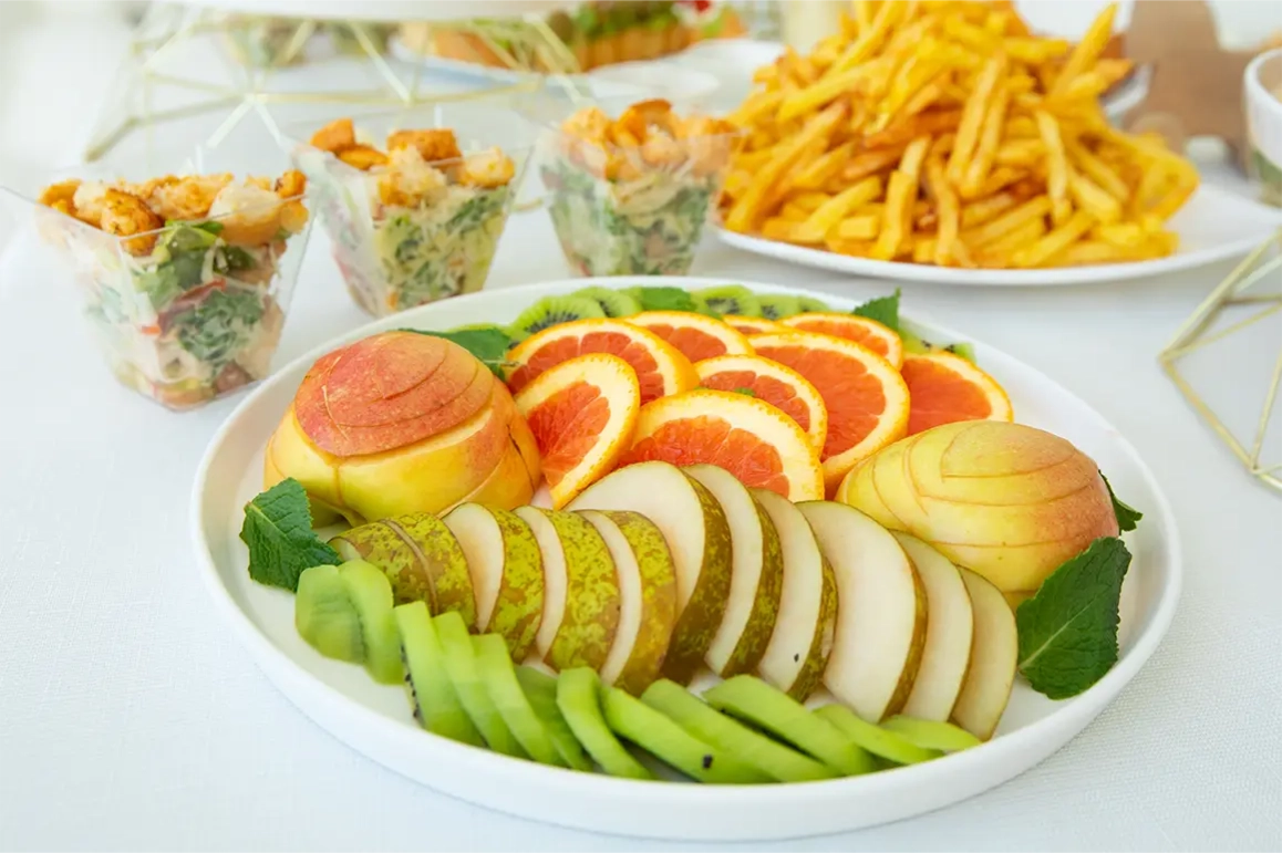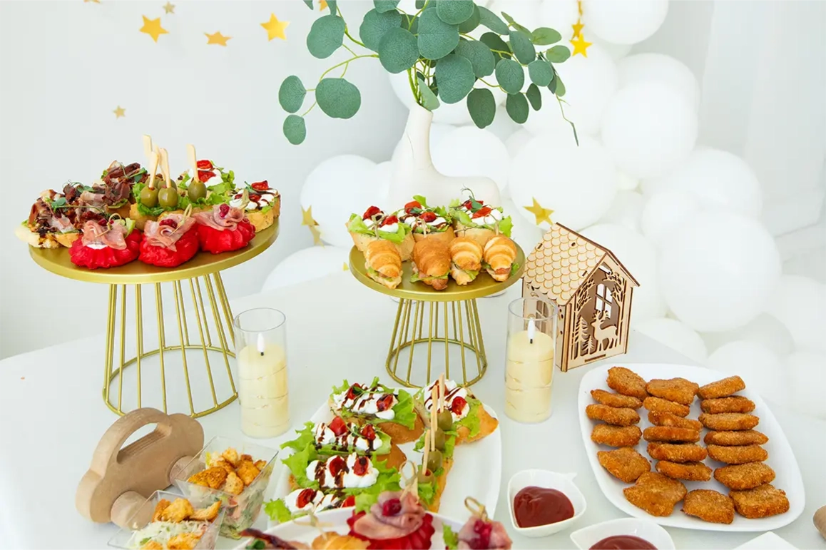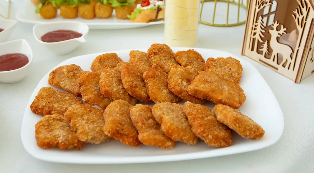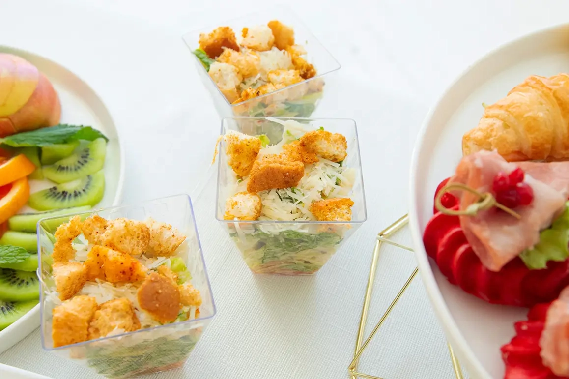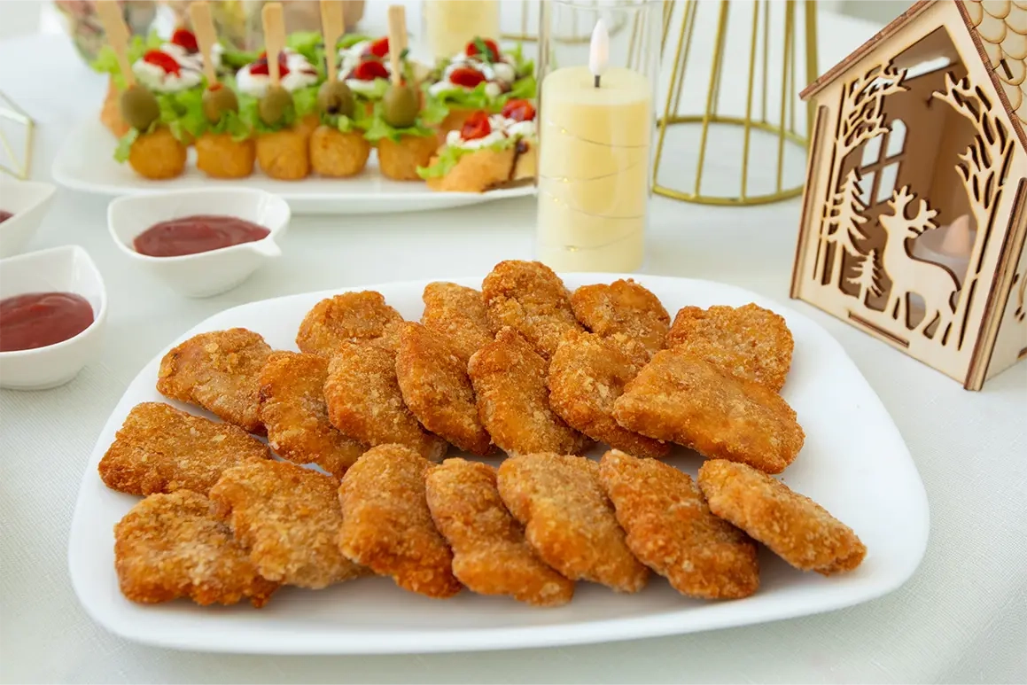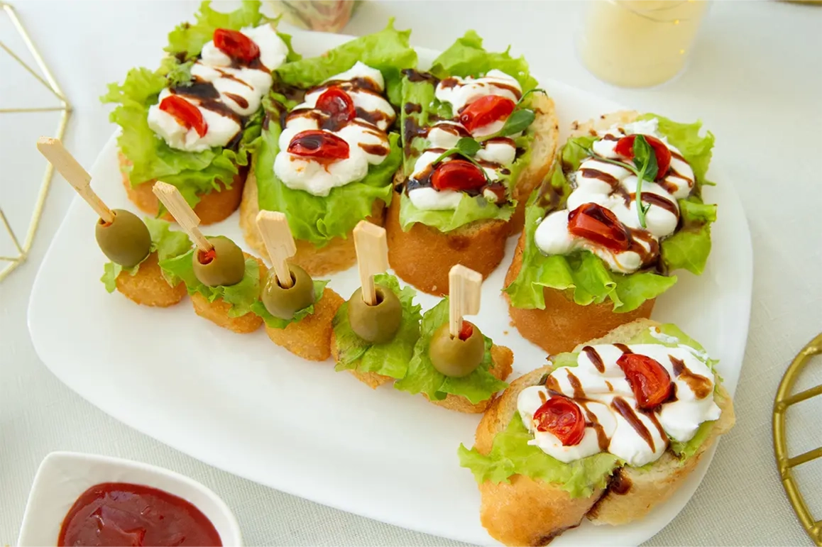 Сыр песто зеленый в хрустящей панировке, фаршированная оливка, перец халапеньо, зелень