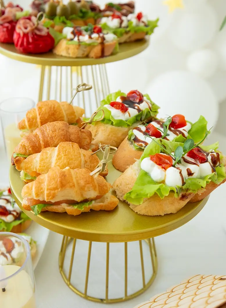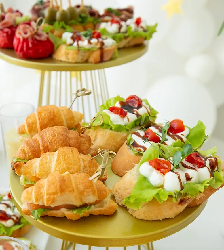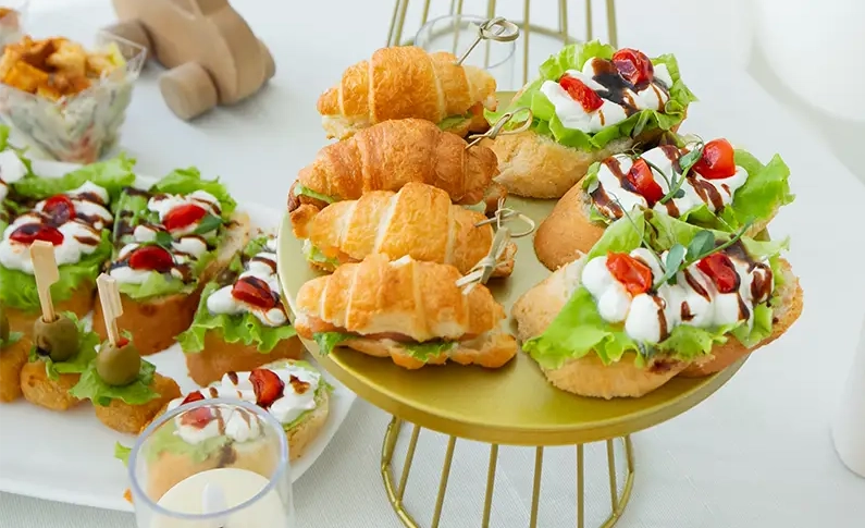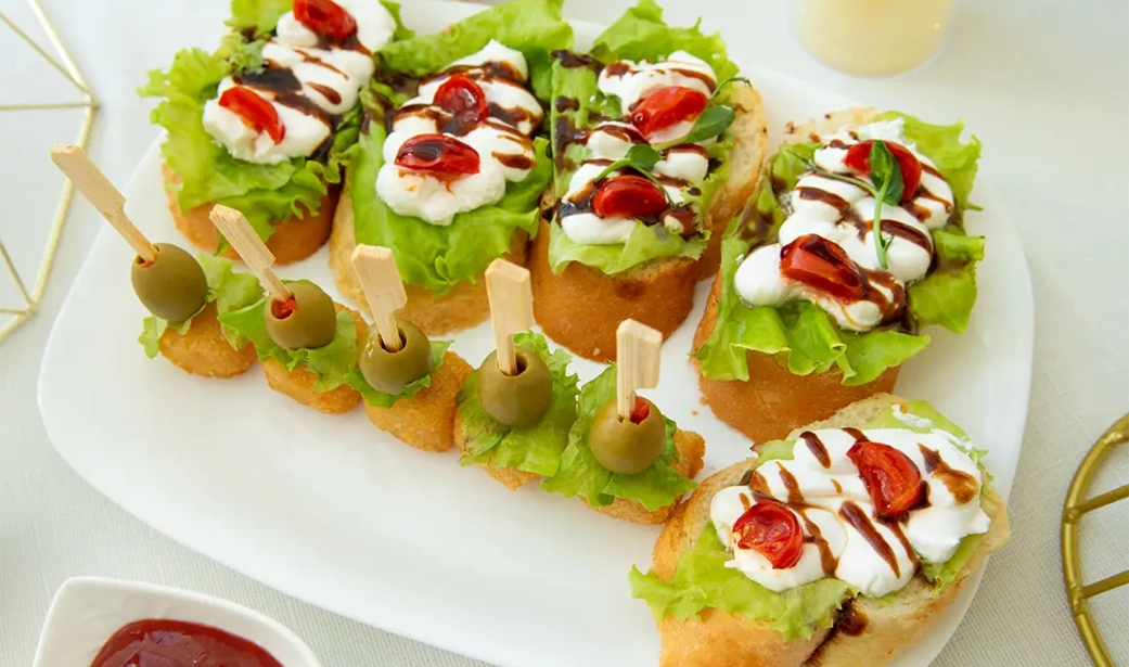 Багет, сыр творожный с зеленью, печеные черри, зелень