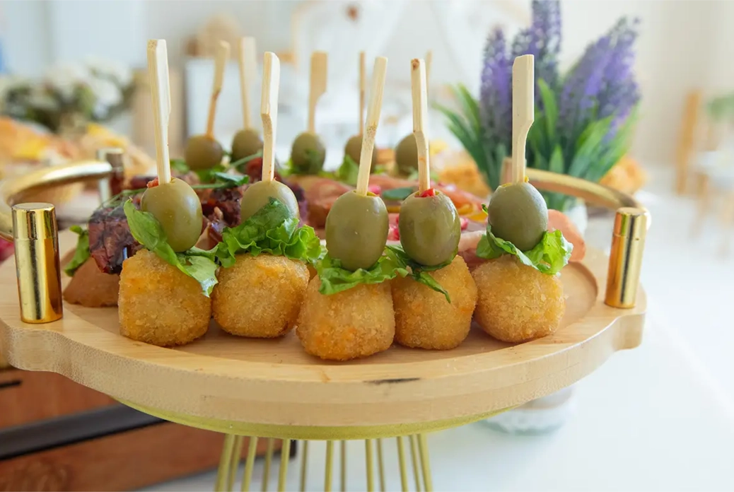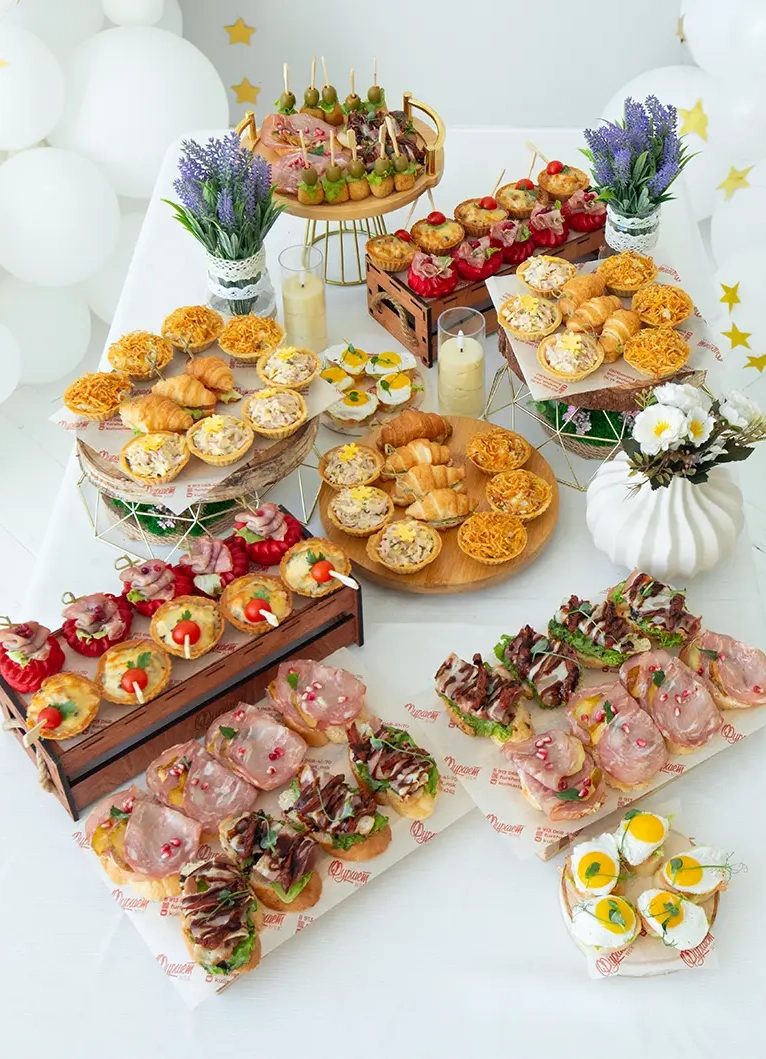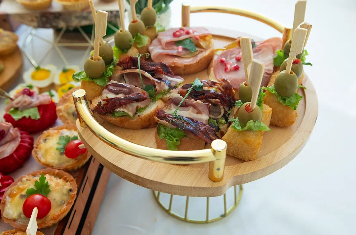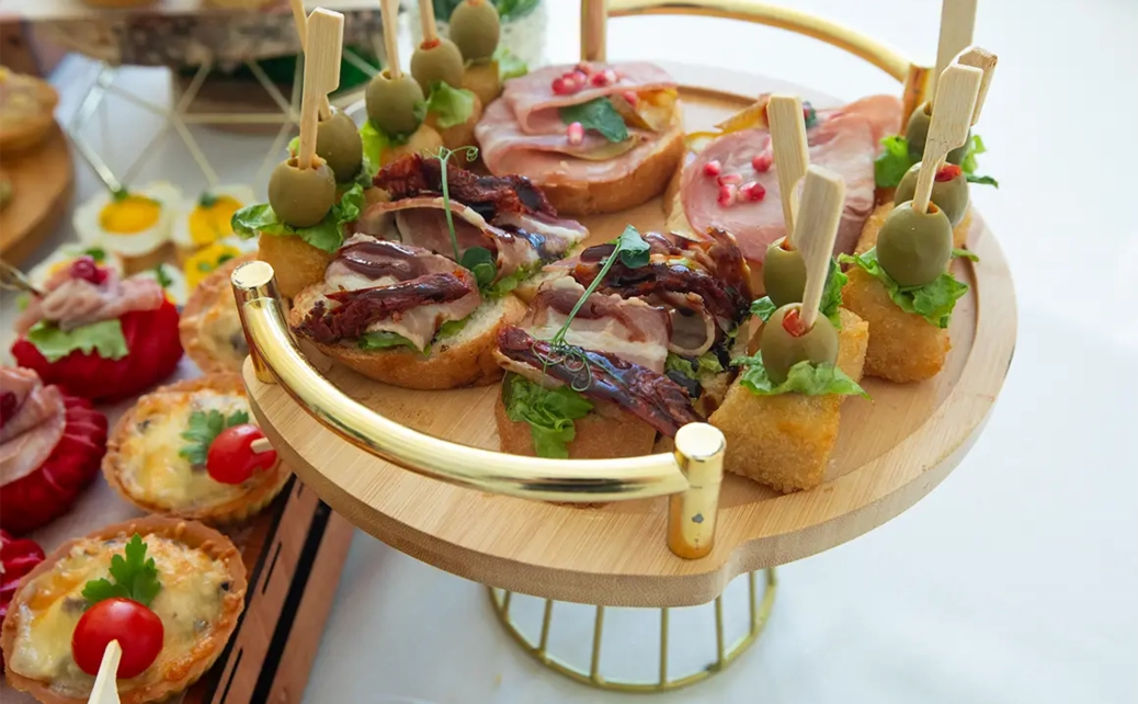 Багет, творожный сыр, пармская ветчина, груша, гранат, мята