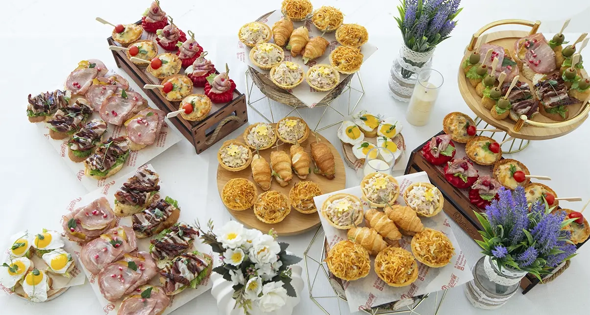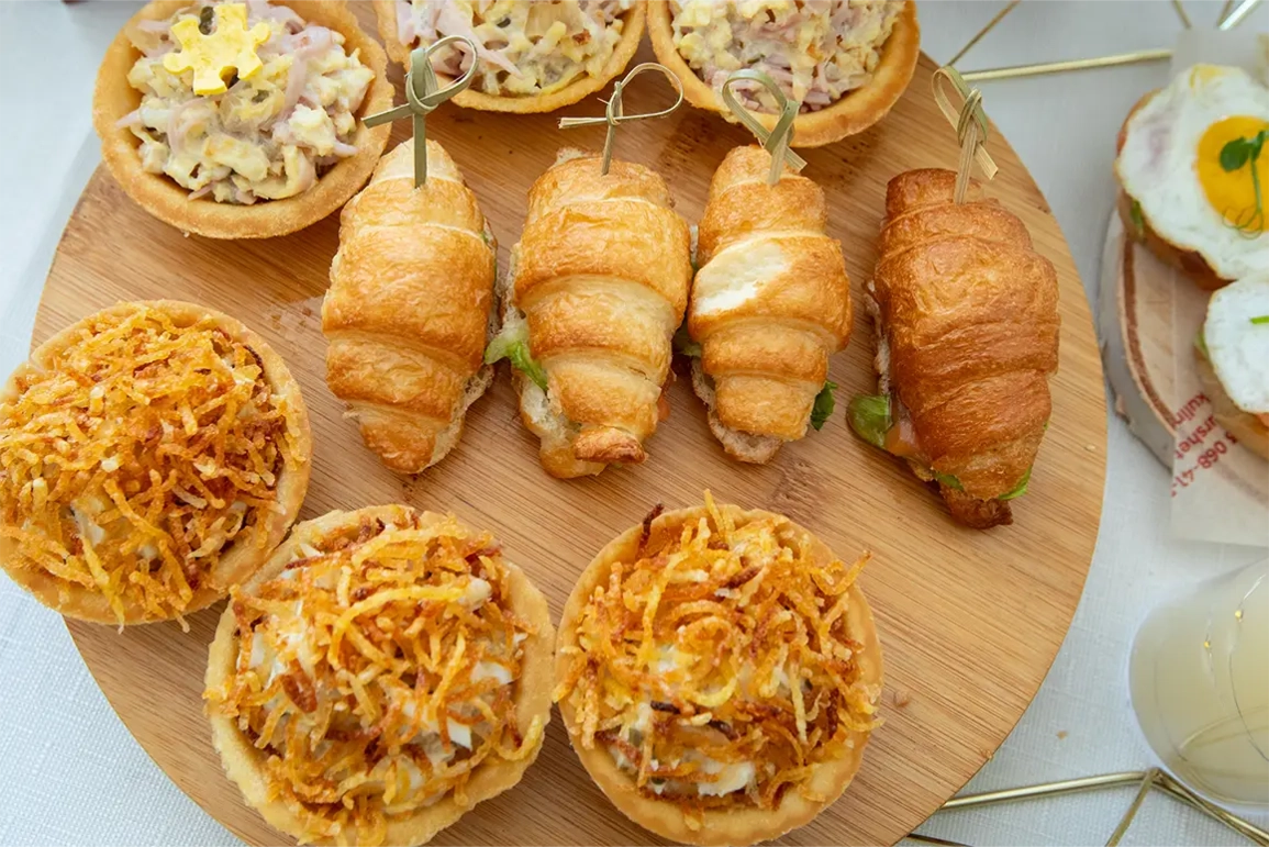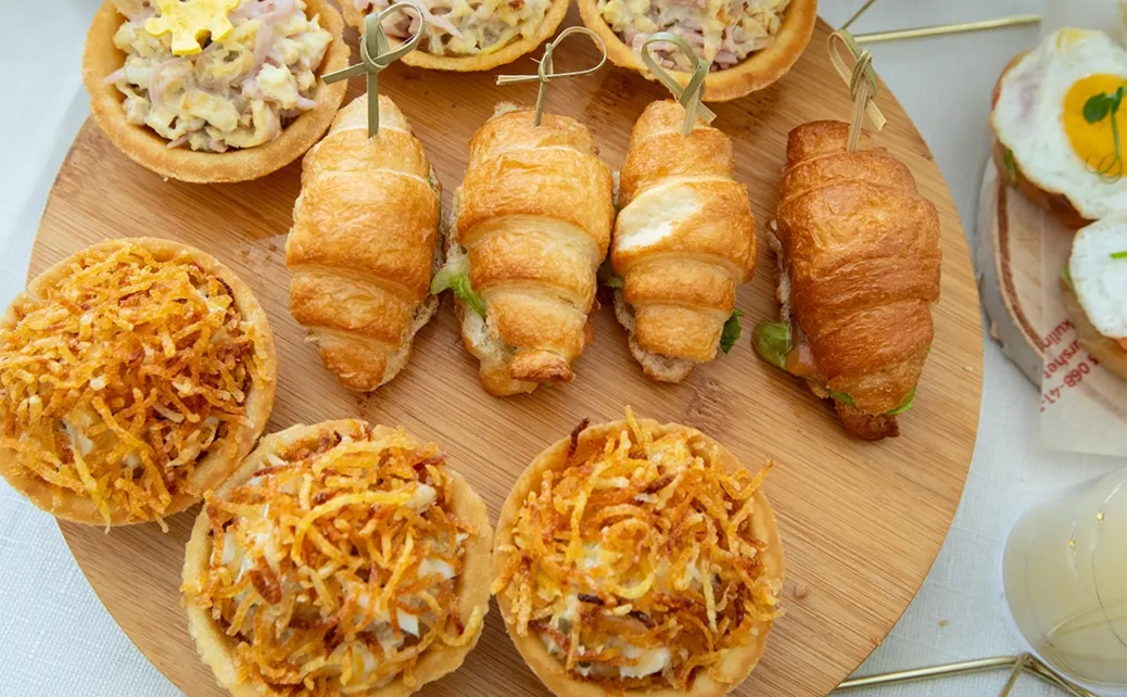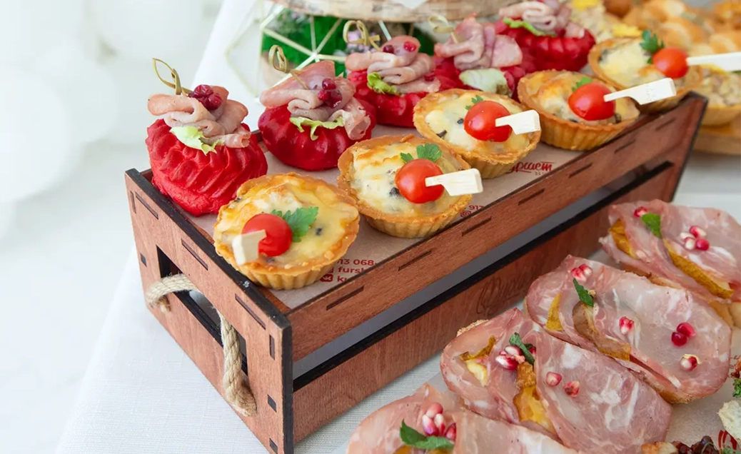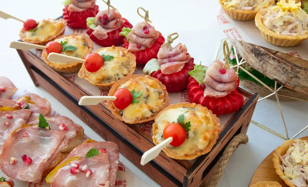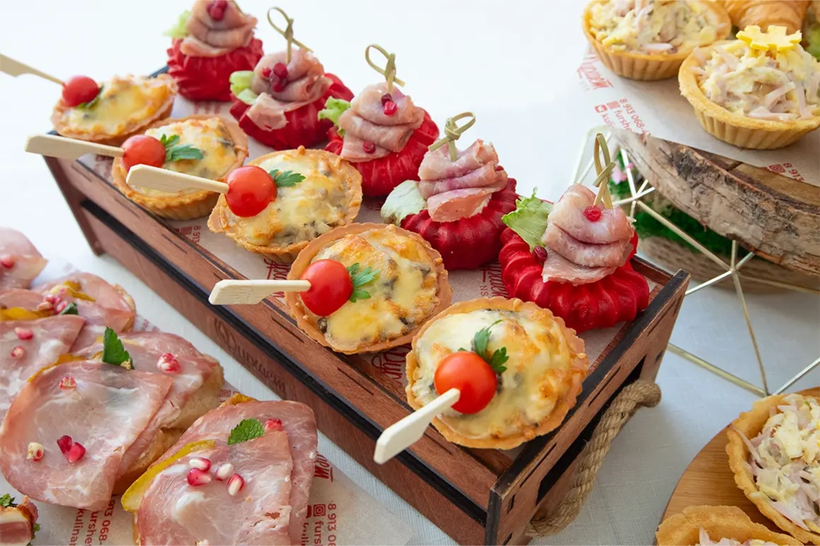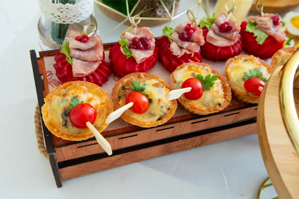 Профитроль, крем-чиз, пармская ветчина, брусничный соус