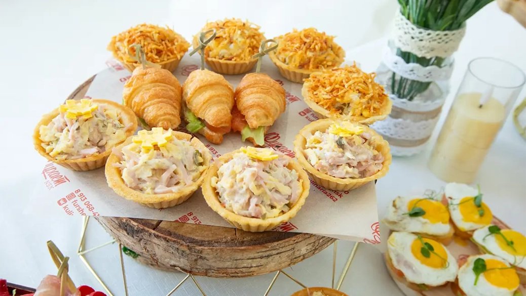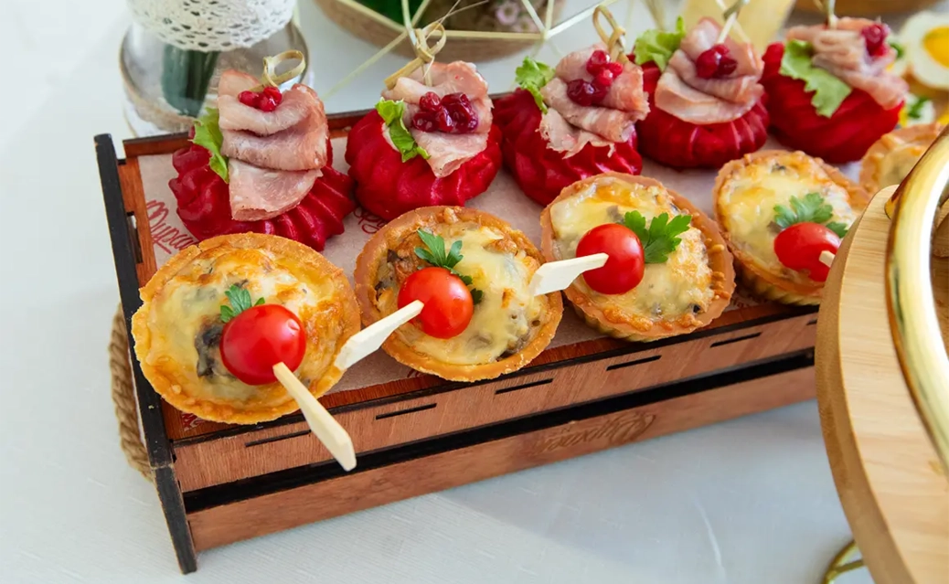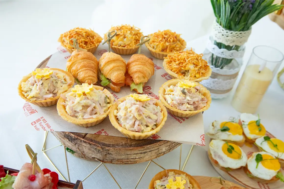 Филе курочки, шампиньоны, лучок, сливки, сыр. Запекается в тартолетке