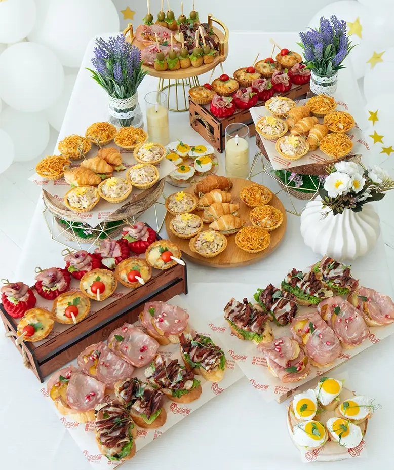 Ветчина, огурец маринованный, блины яичные, лук пассированный, майонез